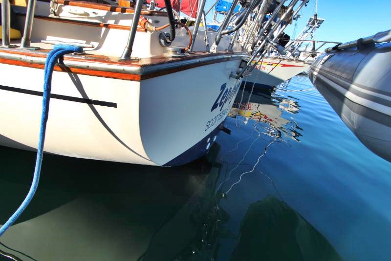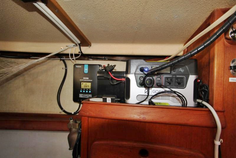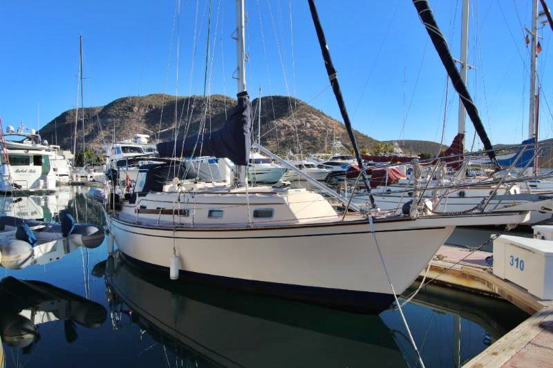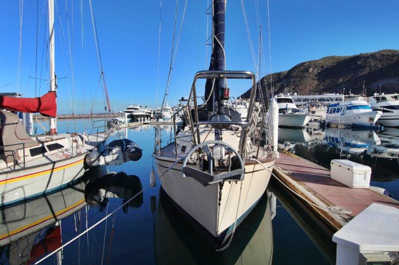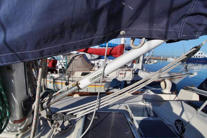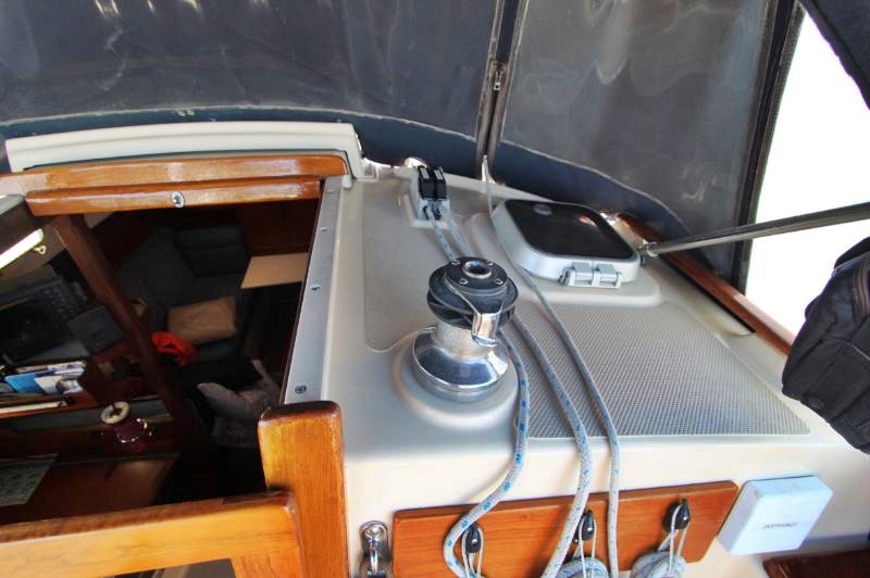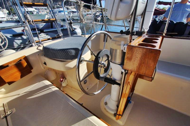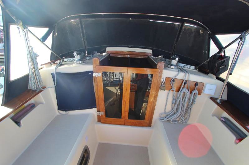 The galley is to starboard of the companionway entrance, with a 2-burner propane stove top with steel safety bar, microwave, deep double stainless-steel sink, and top loading fridge/freezer allow for easy meal preparation when on shore power. The navigation station is to port with a huge quarterberth behind. Storage abounds below the berth, as well as in the nav station.