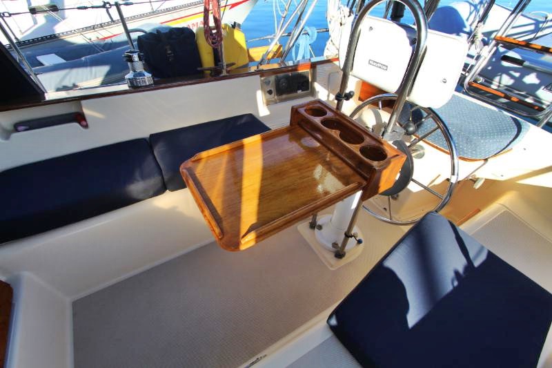 Teak fold-down cockpit table