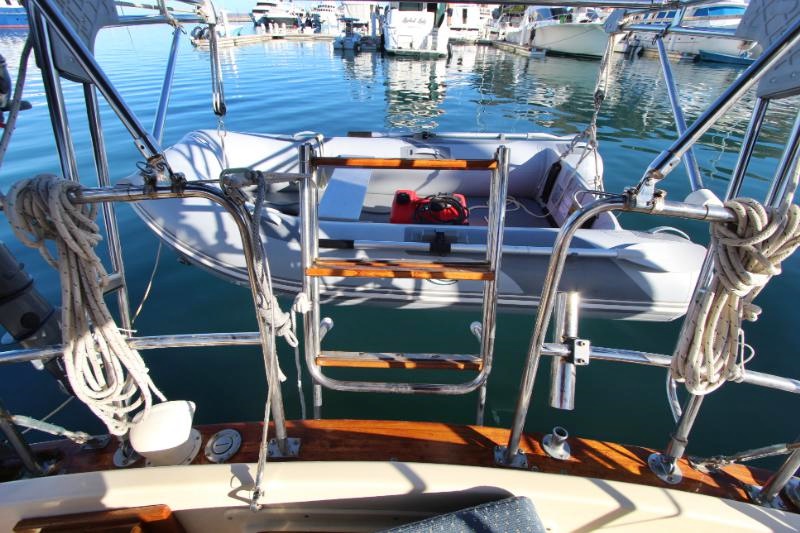 Transom-mounted stainless-steel ladder |